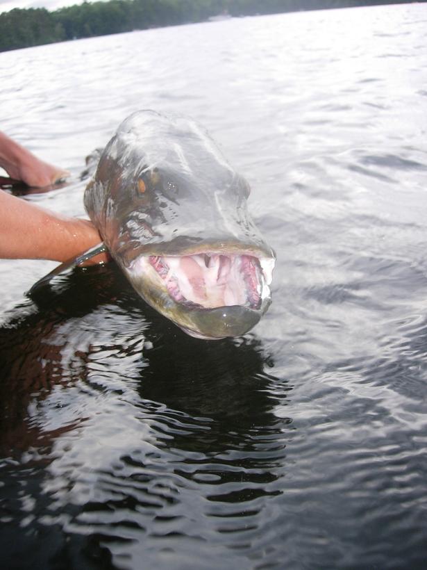 Virginia Fishes: New Muskellunge (Esox masquinongy ... from 1.bp.blogspot.com The musky's pads of small teeth are angled inward somewhat and prevent prey fish from ever getting out of that terrifying mouth again. It is the largest member of the pike family, esocidae. Muskie, the common nickname for the muskellunge (esox masquinongy), derives its name from the ojibwe maashkinoozhe quick answer to can you eat muskie fish? Pike and muskie are both amazing fish to catch. A profile view closeup of a head of a large muskie fish, with its mouth open and teeth exposed, being held by an angler on a sunny day on a lake. Muskie are most active on cloudy, overcast days. Little brother catches big fish 2nd outing nets 5 pound tiger. Tooth tamer are the only rods that the team trusts to run in our boats and this video shows why.